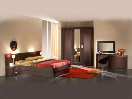 В новой спальне есть все, что необходимо для отдыха современного человека: кровать снабжена подсветкой, а дизайнерское решение туалетного стола позволяет не загромождать пространство спальни благодаря невесомой консоли. Шкаф для одежды и белья 2 комплектуется стационарной штангой и обязательным в спальне высоким зеркалом. Зеркальная дверь может навешиваться как справа, так и слева.