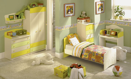 "КАПИТОШКА" – это модульная серия мебели для самых маленьких детей. Выполненная в нежных пастельных тонах ванили, желтого и зеленого цвета , эта серия станет украшением комнаты для малыша. Такие милые детали, как рисунок в виде цветочков на фасадах и желтые круглые ручки, делают КАПИТОШКУ особенно привлекательным. Множество ящичков позволят с удобством разместить одежду, игрушки и книжки ребенка. Фасады шкафа, комода, тумб и спинки кровати изготавливаются из плиты МДФ цвета ваниль. В шкафу для одежды установлена металлическая штанга. На выдвижных ящиках – телескопические направляющие. К "КАПИТОШКЕ" можно купить симпатичную разноцветную кровать-качалку, изготовленную из натурального дерева и покрашенную в цвет "КАПИТОШКИ".