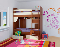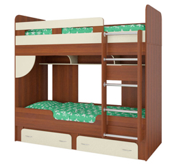 Кровать с усиленными ребрами жесткости. Для ступеней лестницы предусмотрены противоскользящие наклейки. 2 выкатных ящика и полочки над нижней кроватью позволяют разместить множество детских игрушек и книг.На нашем сайте всегда в наличии около 500 наименований корпусной мебели.