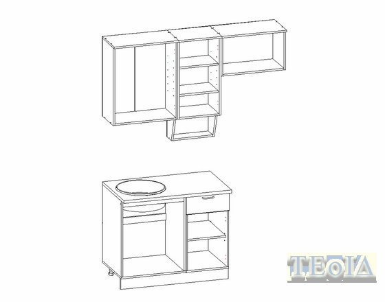 Столешница - нераздельная (общая для нижних шкафов.
