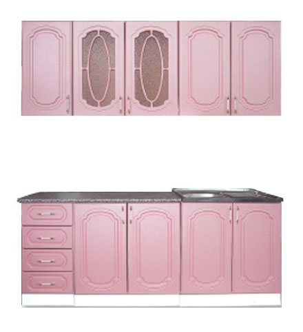 Фасад: МДФ, цвет «Розовый» матовый, Тип фасадных дверей: «Овал». Столешница: постформинг «Мрамор». Габариты, мм: 2 000.