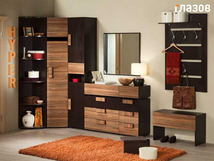 Новая модульная коллекция "HYPER" — для молодых, динамичных и активных людей. Она проста и функциональна, выпускается в наиболее востребованном сочетании цветов — Венге и Палисандр. Стильная удобная Вешалка 2 имеет полочку для головных уборов. Тумба 1 выглядит свежо и оригинально благодаря декоративным нишам. А яркая Полка угловая 1 является идеальным местом для размещения милых сувениров и необходимых мелочей.