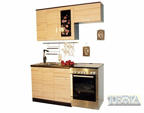«Сакура - 1» компактная модель разработанная специально для небольших кухонь. Несмотря на небольшие габариты «Сакура - 1» полнофункциональная кухня, содержащая все необходимые кухонные блоки. По желанию заказчика кухня доукомплектуется карнизом цвета «венге». Кухня «Сакура - 1» изготавливается в левом и правом вариантах (на фото - левый вариант). Технические характеристики: Комплектация: Сушка с поддоном, открытая полка для специй и глубокая врезная мойка. Размеры ДхВхГ: Верх:1600 x 986 x 330 Низ: 1000 x 860 x 600 Цвет: Фасады - бук-капучино, каркасы - венгеНа нашем сайте всегда в наличии около 500 наименований корпусной мебели.