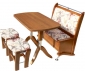 Материал - массив березы, столешница ЛДСП облицована кромкой ПВХ. Размеры стола:1200х600 высота 750, Размеры дивана: длина1230, 980 (450), Банкетки - 3 шт.