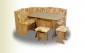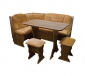 Корпус: ЛДСП, цвет «Ольха», «Бук» , Обивка: ткань , Габариты, мм: угловая скамья 870 х 1500 х 1100, стол 770 х 1 000 х 600, 2 табурета.