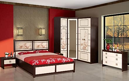 Новинка 2010 года – спальня «Киото» создана в японском стиле, основной принцип которого – гармония с природой. В спальне, оформленной в японском стиле, незримо присутствует дух искусных гейш и темпераментных самураев, что способствует поддержанию гармоничных отношений. Мебель для спальни «Киото» уникальна тем, что изображения, нанесенные на фасады, выполнены по мотивам пейзажей известного японского художника и философа Тэнсе Сюбун, жившего в XV веке. Сочетание корпуса цвета «линум венге» и кремовых фасадов из ЛДСП с ручками, покрытыми бронзой (бельгийского производства), прямые линии и сдержанный декор подчеркивают красоту и лаконичность японского стиля. Серия включает в себя все необходимые предметы интерьера: удобную кровать, вместительный шкаф-купе, тумбы, комод, туалетный стол с зеркалом и банкеткой, напольное зеркало, чтобы можно было видеть себя во весь рост и даже маленький столик для чайных церемоний! Мы уверены, что в такой спальне вы по-настоящему сможете отвлечься от суеты внешнего мира!