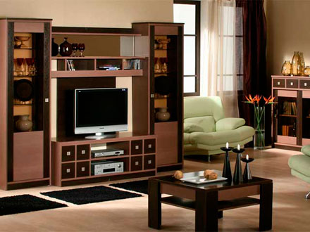Необычное цветовое сочетание текстур «Венге Конго» и «Венге Цава» наполнят любую гостиную атмосферой элегантности и загадочности. Стеклянные витрины для посуды, ящики для мелких предметов, полки для предметов декора, большая ниша для LCD- монитора обеспечат порядок и комфорт. В комплекте к гостиной «Ретро» предлагаются тумба-витрина с раздвижными дверями и журнальный столик.
