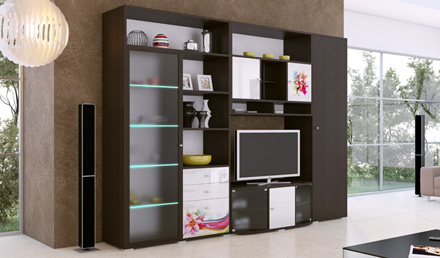 Современный обладатель изысканного интерьера не пройдет мимо нашей новинки - гостиной "Сантана". Необычное цветовое сочетание текстур - "Венге Каштан" и "Белая глянцевая эмаль" наполнит любую гостиную атмосферой элегантности и загадочности. Стеклянная витрина для посуды, ящики для мелких предметов, полки для предметов декора, оптимальная ниша для ТВ обеспечат порядок и комфорт.