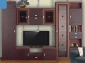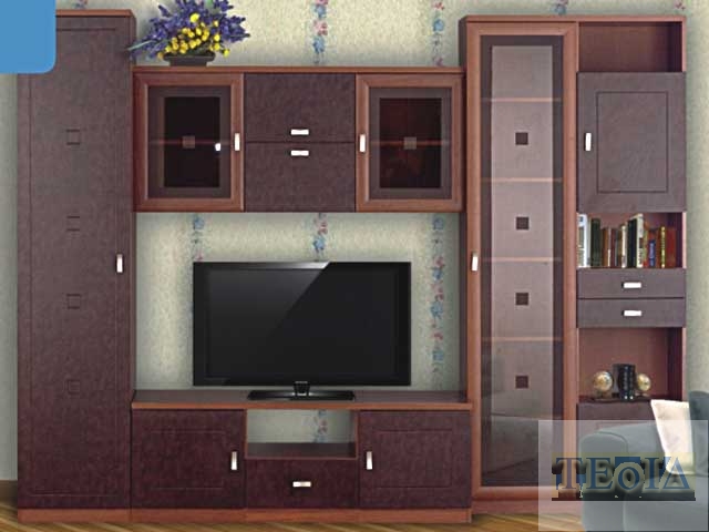 Длина-2700, глубина-604, высота-2029 мм Размер под TV: 1350 x 750 мм Варианты расцветок: «имитация кожи на ЛДСП"+орех(как на фото), Венге+Серебро(полностю венге, с алюминевыми вставками вокруг стекол)