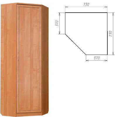 Шкаф угловой со штангой и полками 2216x 730 x 730 мм В x Ш x Г Цвет: венге, дуб, ольха, берёза, груша.
